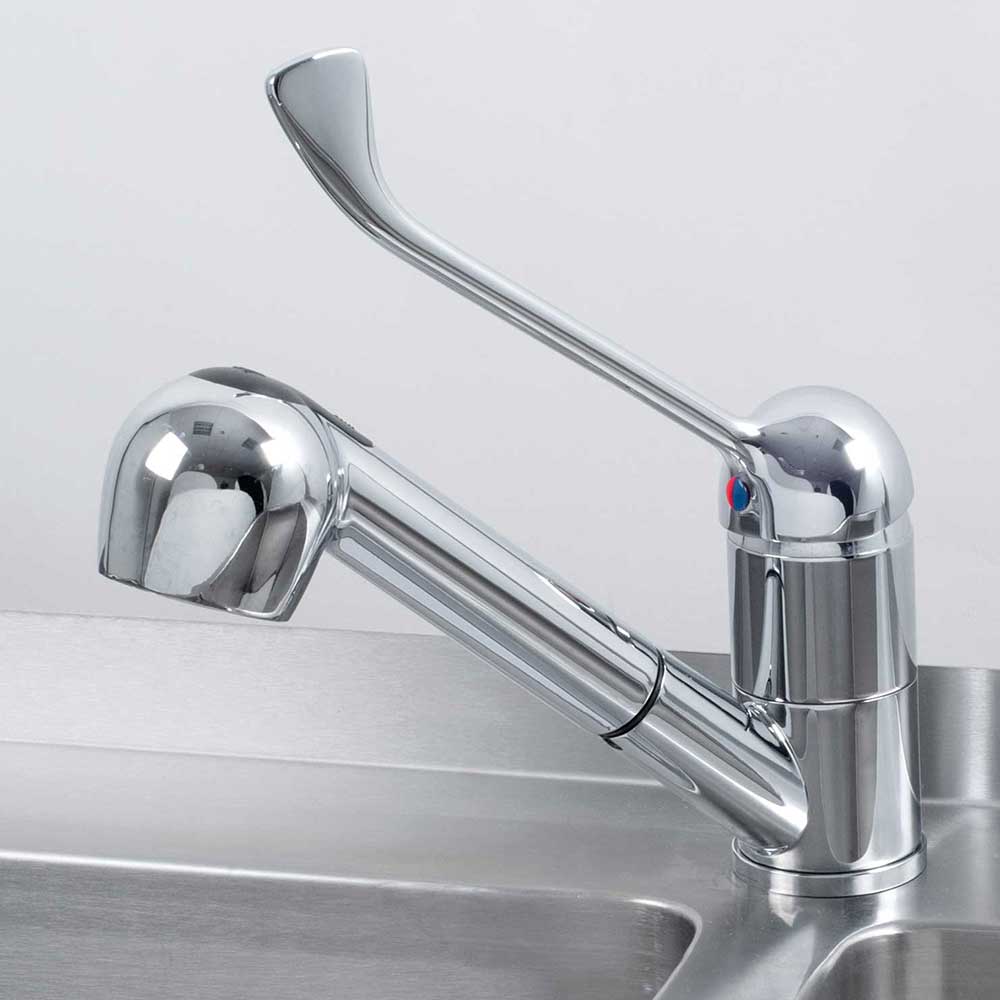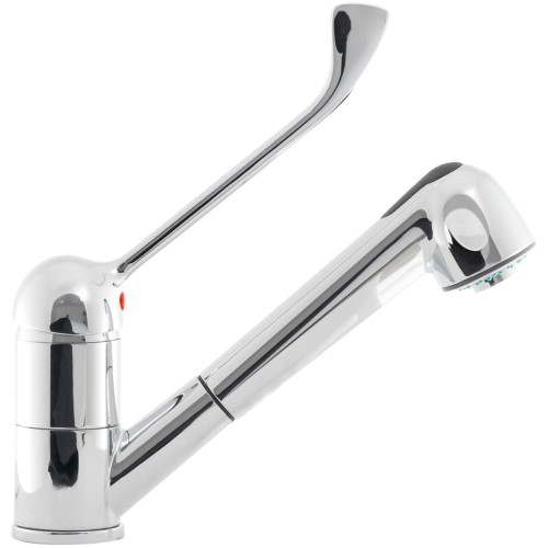 • bateria umywalkowa jednootworowa łokciowa z wyciąganym prysznicem