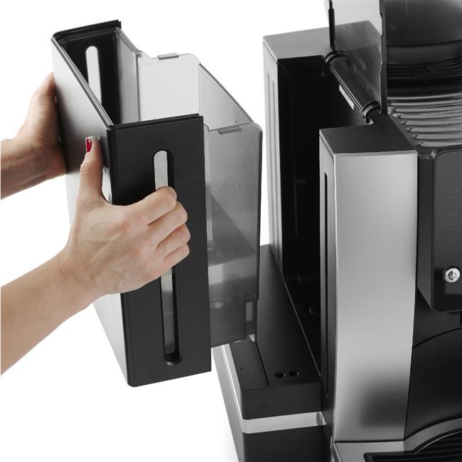 - Zintegrowany powiększony zbiornik na wodę i fusy