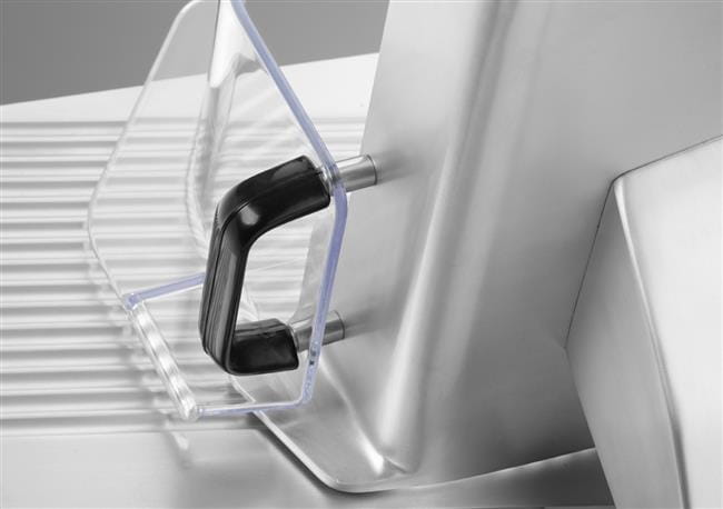 Ręcznie złożone, wyprodukowane we Włoszech. Obudowa wykonana z aluminium, płyta robocza wykonana z tłoczonego arkusza aluminium. Ostrza wykonane ze stali nierdzewnej. Regulacja grubości krojenia za pomocą pokrętła, w zakresie: od 0 mm do 16 mm. Wbudowana ostrzałka zapewniająca stałą skuteczność tarczy tnącej. Silnik chłodzony powietrzem, z zabezpieczeniem przed przegrzaniem. Duża moc silnika i uniwersalne ostrze zapewniają możliwość krojenia kiełbas, serów, wędlin oraz mięs i ryb (bez kości/ości). Spełniają wszelkie wymogi bezpieczeństwa dla urządzeń do użytku profesjonalnego, tj.: – Ustawienie pokrętła na grubość krojenia „0” utrzymuje ostrze za jego osłoną. – Ochrona przed uruchomieniem przy zdemontowanej ostrzałce lub zdjętej osłonie ostrza. – Możliwość zablokowania i zdemontowania wózka tylko przy ostrzu ustawionym w pozycji „0” grubości. – Zabezpieczenie ostrza w postaci zamocowanego na stałe pierścienia. Możliwość demontażu stalowego holdera wykonanego ze stali nierdzewnej i umycia go w zmywarce – łatwe utrzymanie higieny Krajalnica automatyczna 350 firmy HENDI to włoskie urządzenie typu heavy-duty, które wyróżnia się dużą mocą silnika zapewniającą możliwość krojenia twardych kiełbas, serów, wędlin oraz mięs i ryb (bez kości/ości). Regulacja grubości krojenia pozwala łatwo uzyskać pożądane rezultaty – idealnie cienkie lub grubsze plastry bez względu na rodzaj produktu, czy to wędlina, czy to twardy ser. Dzięki wbudowanej ostrzałce urządzenie zawsze oferuje 100% wysokiej jakości krojenia. Orientacyjny maks. wymiar krojonego produktu: 310x260 mm. Wózek z ostrzem może przesuwać się automatycznie podczas krojenia produktu. Możliwość zaprogramowania automatycznego krojenia produktów ze stałą lub ze zmienną prędkością wózka. Urządzenie liczy ilość plastrów.