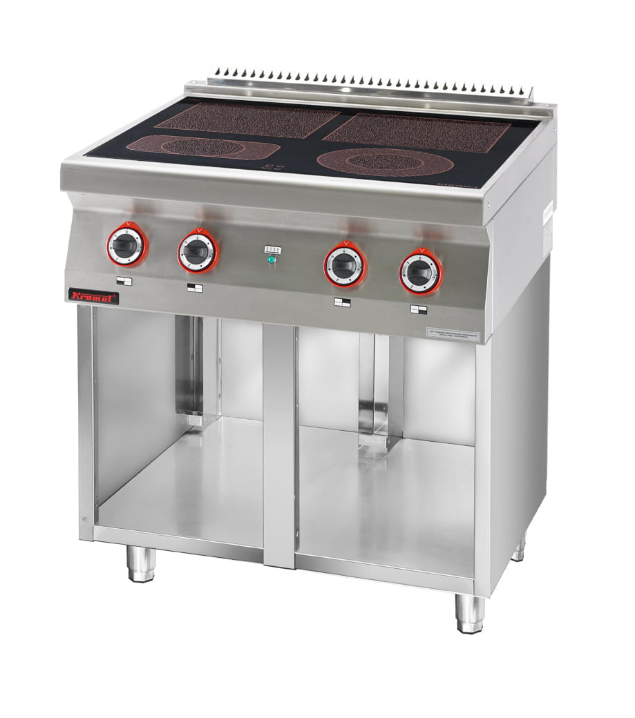 Kuchnia elektryczna ceramiczna 4 pola 2x4kW + 2x2,1kW na podstawie szafkowej otwartej