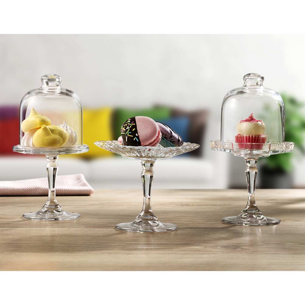 Mini patera z kloszem, szklana, H 198 mm