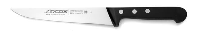 Nóż kuchenny, seria UNIVERSAL firmy Arcos jest wykonany z innowacyjnej, opatentowanej stali nierdzewnej, dzięki której zawdzięcza swoją wysoką twardość i odporność na korozję. Cechuje się również wysokim komfortem użytkowania – jego uchwyt jest doskonale wyważony. Sprawdzi się w szerokim wachlarzu kuchennych prac, od krojenia warzyw, po siekanie mięsa.