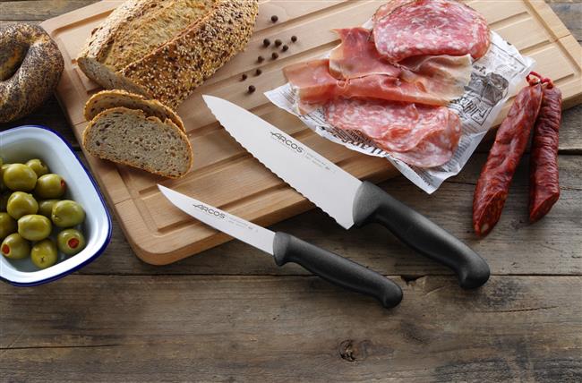 2900 to seria łącząca ergonomię, siłę, oraz prostotę zapewniające długotrwałe i komfortowe użytkowanie. Wyprodukowane w Hiszpanii. Ostrza wykonane blachy walcowanej – z innowacyjnej, martenzytycznej stali nierdzewnej NITRUM® o podwyższonej twardości oraz odporności na korozję. Uchwyty wykonane z polipropylenu – wtryskiwany bezpośrednio na trzpień, co zwiększa trwałość łączenia. Powierzchnia uchwytów teksturowana, mocno chropowata – zapobiega wyślizgnięciu się z dłoni (anti-slip). Na uchwytach powłoka BACTIPROOF SILVER® pozwalającą zredukować do minimum gromadzenie się bakterii. Zwiększona odporność na wysoką temperaturę. Twardość: około 55HRC. Nadają się do mycia w zmywarce, lecz zalecane jest mycie ręczne. Z certyfikatem NSF Nóż szefa kuchni, ząbkowany, seria 2900 firmy Arcos jest wykonany z innowacyjnej, opatentowanej stali nierdzewnej, której zawdzięcza swoją wysoką twardość i odporność na korozję. Zapewnia ergonomię i higienę pracy dzięki teksturowanemu uchwytowi anti-slip z powłoką redukującą gromadzenie się bakterii. Ostrze ząbkowane.