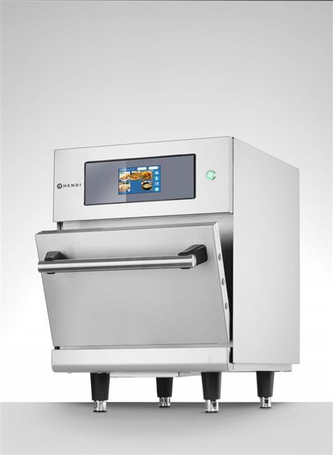 HENDI Speedoven X90 działa 10 razy szybciej niż tradycyjne piece i może być wykorzystywany w każdym miejscu, ponieważ nie wymaga podłączenia do wentylacji. Nasz turbo piec przyspieszy obsługę i pomoże uzyskać zawsze idealnie świeże, chrupkie i smaczne przekąski dzięki kombinacji 3 technologii obróbki termicznej. Wybierz jeden z 20 domyślnych przepisów lub zaprogramuj do 1024 własnych i uzyskuj zawsze doskonałe efekty w niezwykle krótkim czasie. Speedoven X90 jest w stanie zastąpić wiele urządzeń gastronomicznych, tym samym oszczędzając miejsce i redukując koszty.Obudowa wykonana ze stali nierdzewnej. Wbudowany konwerter katalityczny eliminuje konieczność podłączenia okapu – piec może być wykorzystywany w każdym miejscu i pracować od razu po podłączeniu do prądu. 3 technologie umożliwiające ekspresową obróbkę: – mikrofale, – konwekcja, – uderzenia gorącego powietrza/nadmuch: strumienie gorącego powietrza są kierowane na produkt. Nie ma potrzeby wstępnego przygotowywania produktów (zarówno świeżych, jak i mrożonych), co przekłada się ograniczenie straty produktów i skrócenie czasu pracy. Funkcja szybkiego startu. Dotykowy panel sterowania o wielkości 5”. Port USB do wgrywania przepisów. Timer: do 20 min. 20 domyślnie wgranych przepisów; możliwość stworzenia do 1024 programów, każdy z 15 fazami obróbki termicznej. Zakres temperatury: 25-280°C. Zakres ustawienia mikrofal: 0-100%. Nadmuch gorącym powietrzem: 10 poziomów. Współczynnik szczelności: IPX3. W zestawie komplet akcesoriów: – okrągła blacha do pizzy, – perforowany kosz teflonowy (do gotowania), – okrągła podkładka perforowana, – płyta grillowa ryflowana, – łopatka do piekarnika Języki systemu operacyjnego: polski, angielski, niemiecki, niderlandzki, hiszpański, francuski, włoski, rosyjski, chiński.
