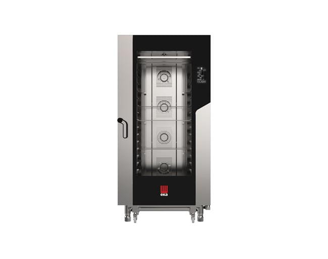 – Seria nowoczesnych pieców konwekcyjno-parowych MILLENIAL BLACK MASK BAKERY na blachy 600x400 mm. Komora pieczenia jest powiększona specjalnie pod kątem większych blach – Elektroniczny, 7-calowy, dotykowy panel sterowania umożliwia wygodne i precyzyjne ustawienie żądanych parametrów gotowania – Piece MILLENIAL BLACK MASK posiadają dwa opatentowane rozwiązania: Airflowlogic™ – to opatentowane i innowacyjne rozwiązanie polegające na całkowitym przeprojektowaniu deflektora (osłony wentylatora). Efektem tego zabiegu jest poprawa cyrkulacji przepływu powietrza Humilogic™ – nowy opatentowany system nawilżania polegający na podawaniu wody bezpośrednio z wentylatora. Zapewnia on wysoki poziom wilgoci i znacznie mniejsze zużycie wody NAJWAŻNIESZE FUNKCJE: 1-punktowa sonda Dzięki sondzie piec może stale kontrolować i utrzymywać wskazaną temperaturę wewnątrz potrawy. Nieustannie i samoczynnie koryguje parametry, zapewniając doskonałe efekty pieczenia i gotowania. Automatyczny system myjący Opcja montowana wyłącznie w fabryce. 4 programy mycia: Eco, Normalny, Instensywny, Płukanie. Dostosowane do różnego poziomu zabrudzenia komory. Nowa konstrukcja głowicy myjącej daje aż do 30% oszczędności wody Pre-Heating Rozgrzewanie komory pieca o +30°C więcej niż temperatura zadana w celu przygotowania pieca na przyjęcie potrawy Holding Utrzymywania potrawy w odpowiednio wysokiej temperaturze, bezpośrednio po zakończeniu cyklu gotowania Cool Down Szybkie obniżenie temperatury w komorze, w celu dostosowania do potrzeb kolejnej potrawy, wymagającej niższej temperatury niż panująca w komorze HACCP Możliwość sczytania parametrów pracy pieca w celu kontroli poprawnego przebiegu procesów gotowania Proofer Funkcja zamienia piec w komorę rozrostu Holding Cabinet Piec może pełnić rolę szafy bankietowej – utrzymuje dania w odpowiednio wysokiej temperaturze i nawilżeniu, do momentu wydawania posiłków Możliwość zapisania 100 programów, po 10 kroków każdy Wystarczy wybrać jeden ze 100 programów i wcisnąć START. Piec sam rozpocznie pracę, precyzyjnie utrzymując wcześniej zapisane parametry takie jak temperatura w komorze, temperatura wnętrza potrawy, czas gotowania, stopień wilgotności w każdym kroku całego cyklu. Parametry te można modyfikować, zapisywać i usuwać z pamięci Trzy prędkości wentylatorów od 1500 do 2800 obr./min Trzystopniowa regulacja prędkości wentylatora zapewnia dostosowanie siły nawiewu do potrzeb gotowania oraz jednorodną temperaturę w całej komorze Gotowanie z użyciem sondy Dzięki sondzie piec może stale kontrolować i utrzymywać wskazaną temperaturę wewnątrz potrawy. Nieustannie i samoczynnie koryguje parametry, zapewniając doskonałe efekty pieczenia i gotowania Gotowanie z wykorzystaniem funkcji Delta T Jest to udoskonalona metoda gotowania z sondą. Szczególnie przydatna przy pieczeniu większych porcji mięsa, takich jak np. szynka. System samoczynnie utrzymuje niewielką różnicę pomiędzy temperaturą w komorze, a środkiem potrawy. Dzięki temu potrawa jest równomiernie ugotowana Port USB Rozwiązanie szczególnie zalecane dla kuchni sieciowych. Wystarczy zaprogramować tylko jeden piec. Do pozostałych można wgrać program za pośrednictwem portu USB POZOSTAŁE CECHY PIECÓW MILLENIAL BLACK MASK BAKERY: – Regulacja temperatury w zakresie 30-270°C – Ustawianie czasu pracy do 11 h, 59 min lub praca ciągła NON-STOP – Opóźnienie automatycznego włączenia się pieca aż do 24 godzin – przydatne w celu przygotowania pieca lub dania przed przyjściem personelu do pracy – Możliwość zapisania dnia i aktualnej godziny – Alarm wywołany okapem kondensacyjnym (działa tylko w piecu z podłączonym okapem) – Para wytwarzana poprzez bezpośredni natrysk wody na grzałki, z 10-cio stopniowa regulacją stopnia zaparowania – Podwójnie przeszklone drzwi do komory oraz oświetlenie LED – Bezpieczne drzwi – blokada otwarcia przy 60°, 90 °, 120° oraz 180° zapobiega oparzeniom obsługi poprzez niekontrolowany ruch drzwi po ich otwarciu – Zewnętrzna szyba pieca chłodzona grawitacyjnie – Drzwi z zawiasem po prawej – Łatwe otwieranie wewnętrznej szyby drzwi – Uszczelka drzwi wykonana z grubego i odpornego na wysokie temperatury silikony, montowana w obudowie pieca, łatwa do samodzielnej wymiany – Izolowana obudowa pieca nie tylko wpływa na oszczędność energii elektrycznej, ale i zwiększa bezpieczeństwo personelu kuchni – Rynienka pod drzwiami zapobiega kapaniu skondensowanej pary, szczególnie po gotowaniu w cyklu mieszanym i na parze – Komora pieca wykonana z wysokiej klasy stali nierdzewnej AISI 304 – Tłoczona komora pieca z zaokrąglonymi narożnikami ułatwia czyszczenie pieca – Obudowa w całości ze stali nierdzewnej – Współczynnik szczelności: IPX 4 – Regulowane nóżki zapewniają idealne wypoziomowanie pieca – Wymagane podłączenie do prądu, uzdatnionej wody, kanalizacji