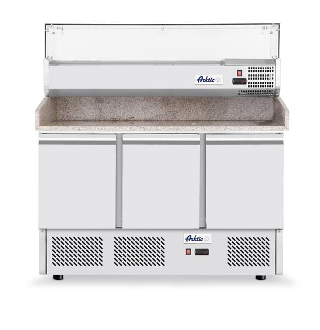 Stół chłodniczy do pizzy 3-drzwiowy z nadstawą i blatem roboczym