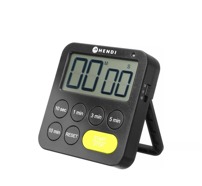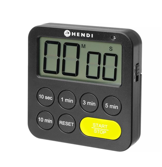 Timer jednozakresowy firmy HENDI to idealny pomocnik w kuchni, do precyzyjnej i wygodnej pracy. Jest wyposażony w rozkładaną nóżkę, otwór do zawieszenia na ścianie, a także magnes do łatwego umieszczenia timera gdziekolwiek potrzebujesz. 3 tryby alarmu – cichy, umiarkowany i głośny – i precyzyjna, 10-sekundowa dokładność do 100 minut sprawiają, że timer sprawdzi się w różnych zadaniach.